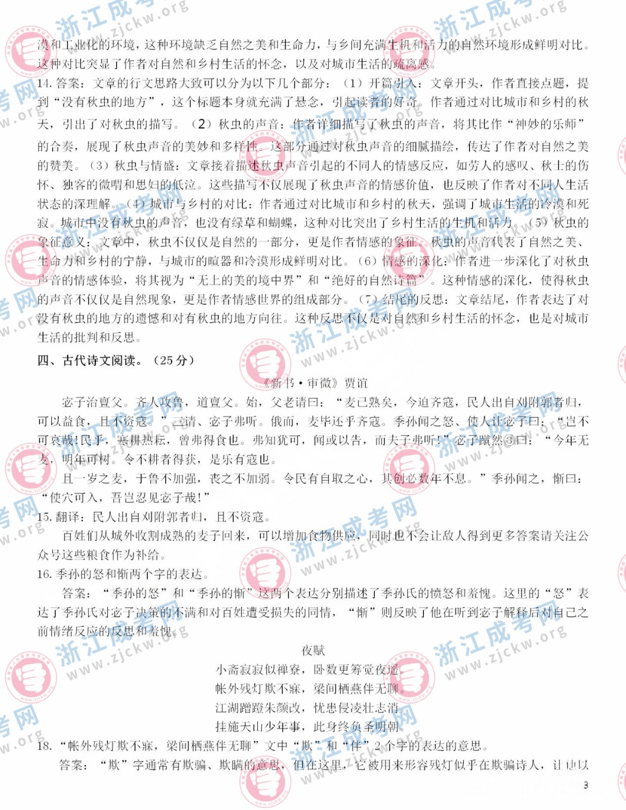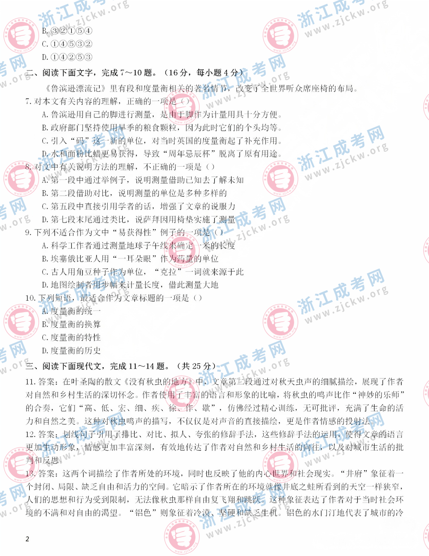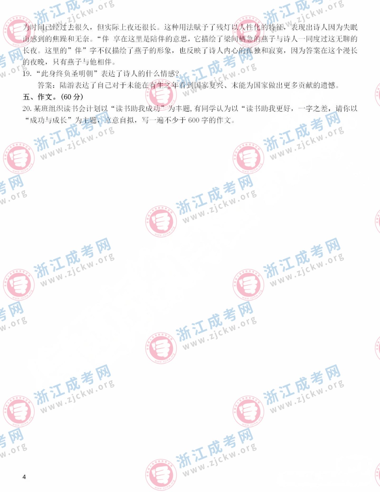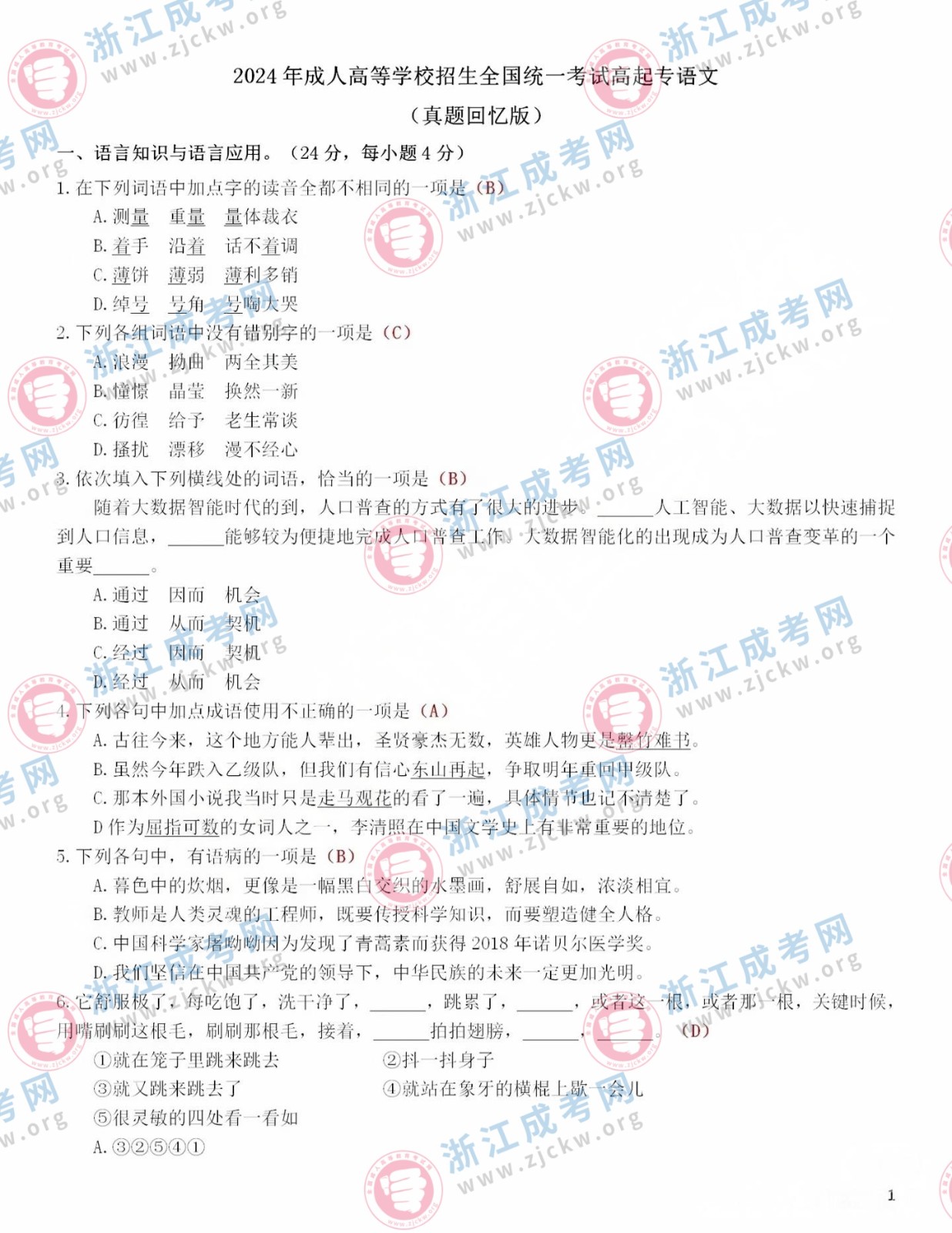 浙江成考網(wǎng)為廣大考生提供2024年成人高考全國統(tǒng)一考試(高起專語文)真題答