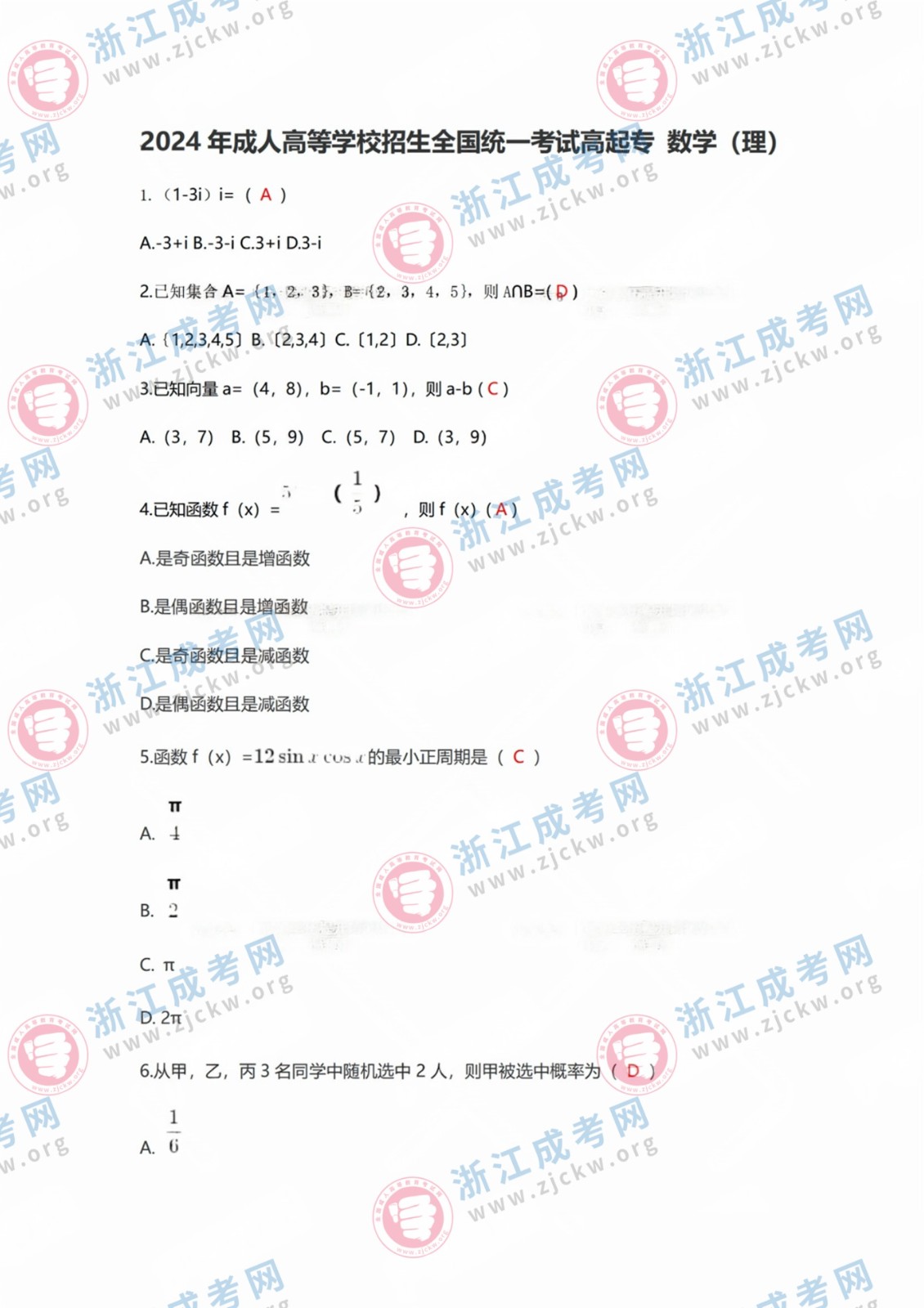 浙江成考網(wǎng)為廣大考生提供2024年成人高考全國統(tǒng)一考生(高起點(diǎn)數(shù)理)真題答案