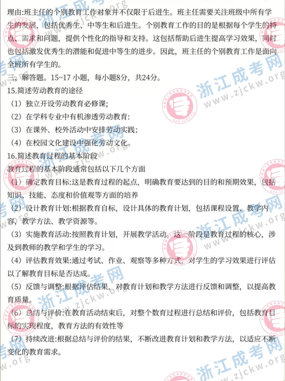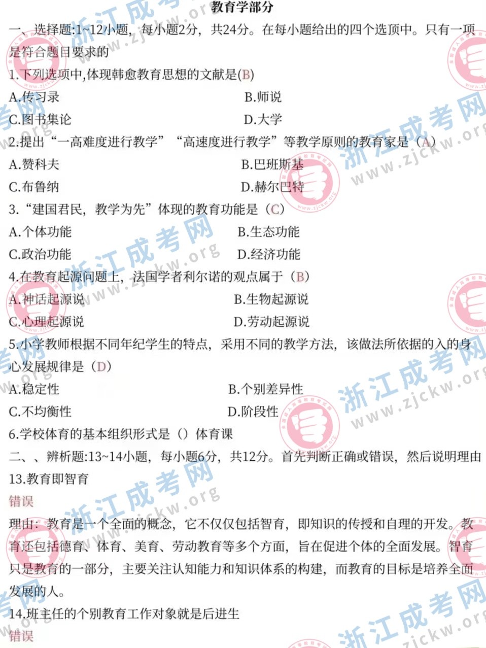 杭州成考網(wǎng)為廣大考生提供2024年成人高考全國統(tǒng)一考試(專升本生教育理論)真題答案
