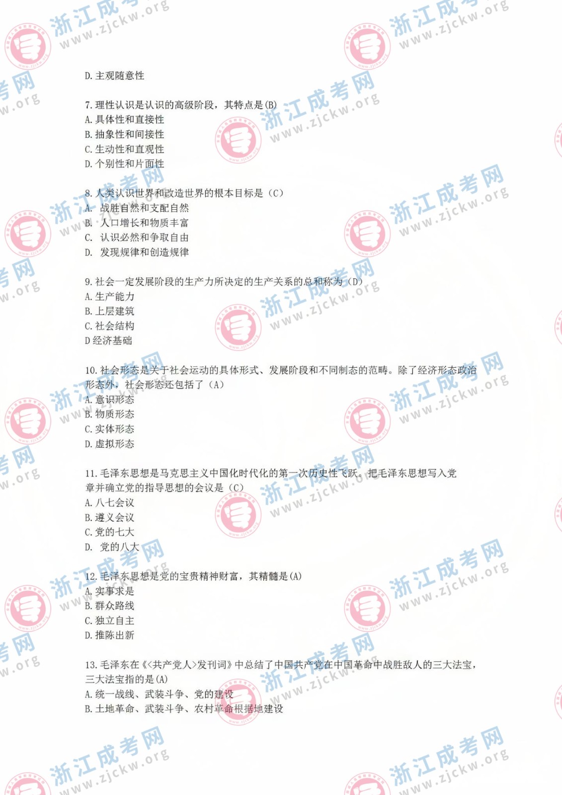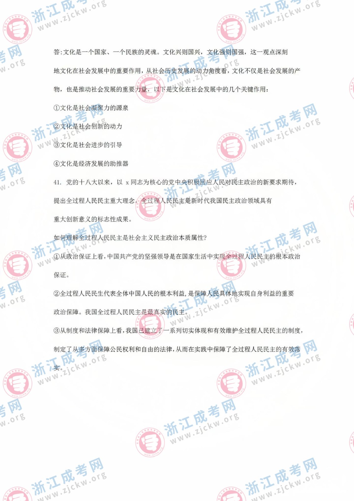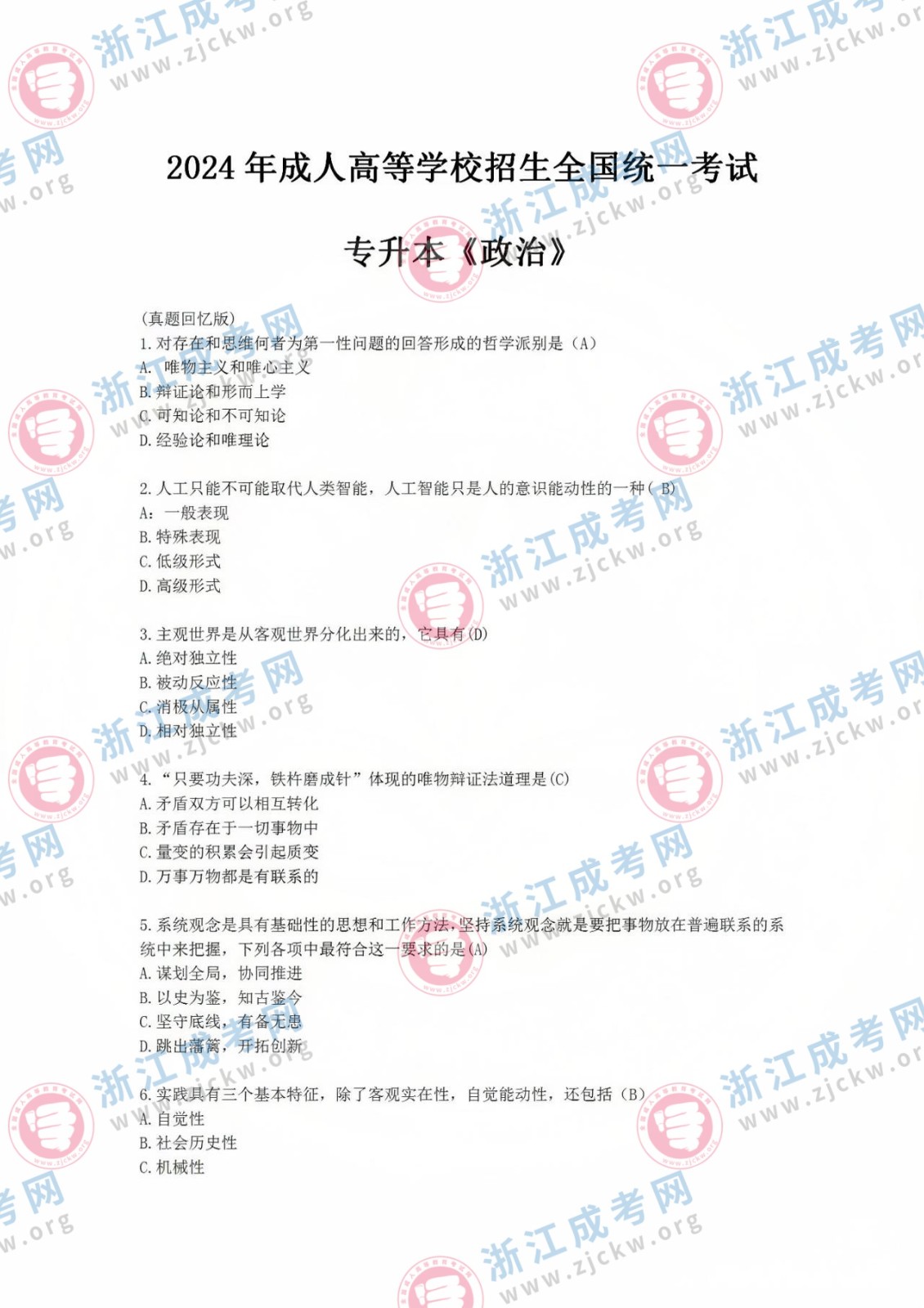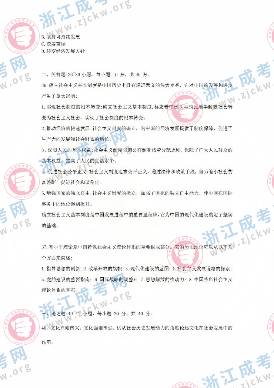 杭州成考網(wǎng)為廣大考生提供2024年成人高考全國統(tǒng)一考試(專升本政治)真題答案